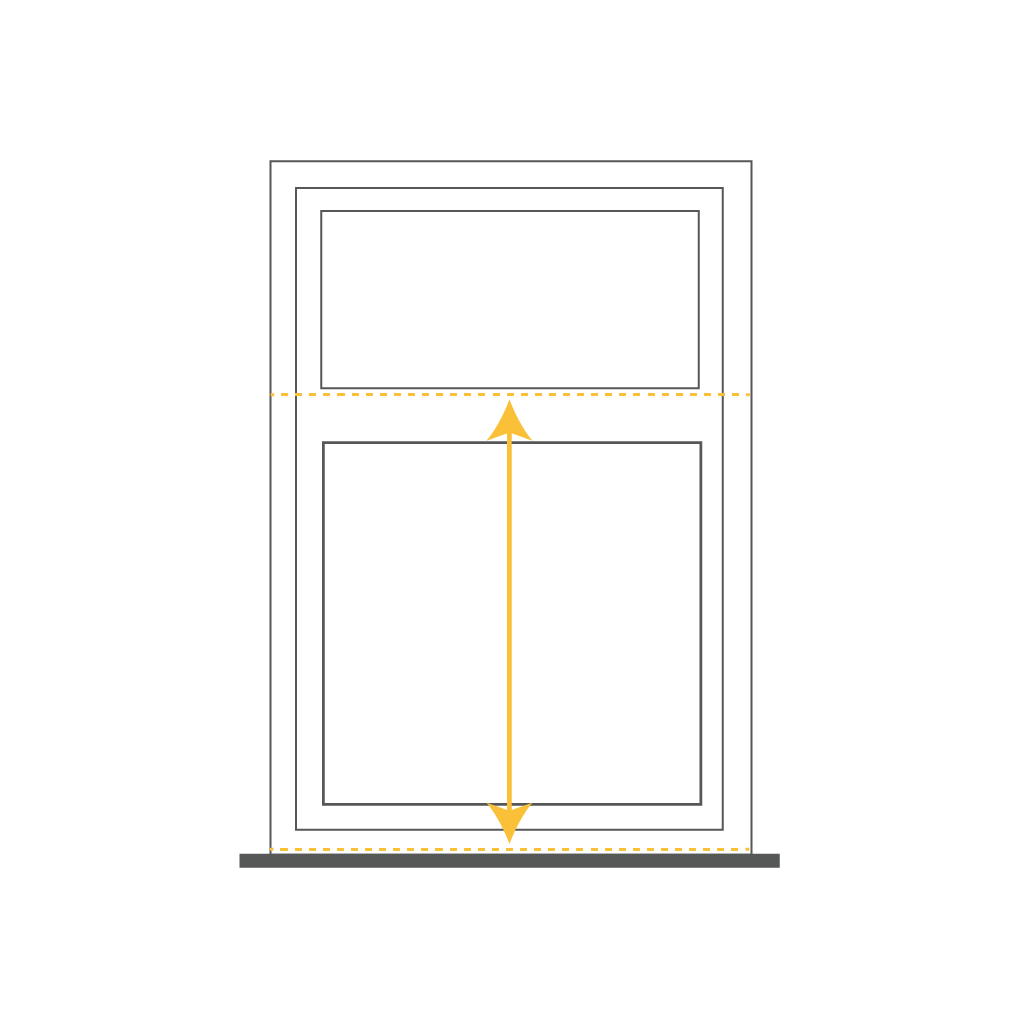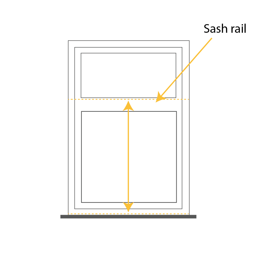 Measure from the bottom of the opening to the sash break. Deduct 2.5mm.