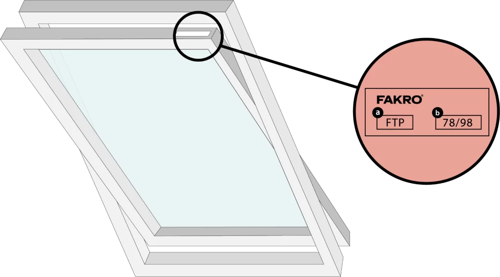 When opening your Fakro window, check for a metal, plastic, or sticker plate on the upper side of the frame.Â