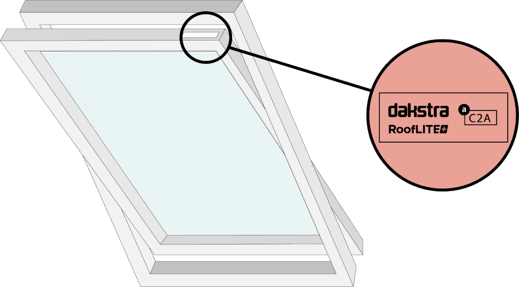 As you open your Velux window, you’ll notice a metal, plastic, or sticker plate on the upper side of the frame.
